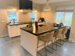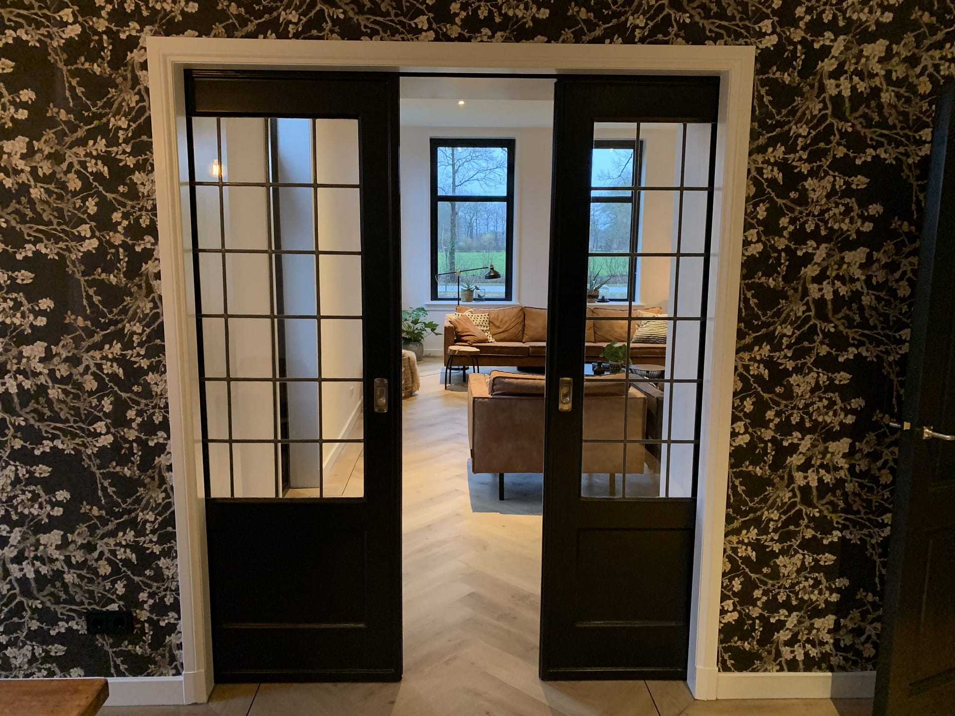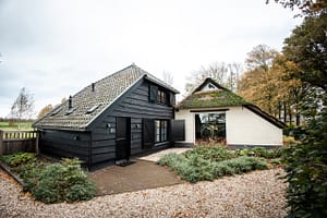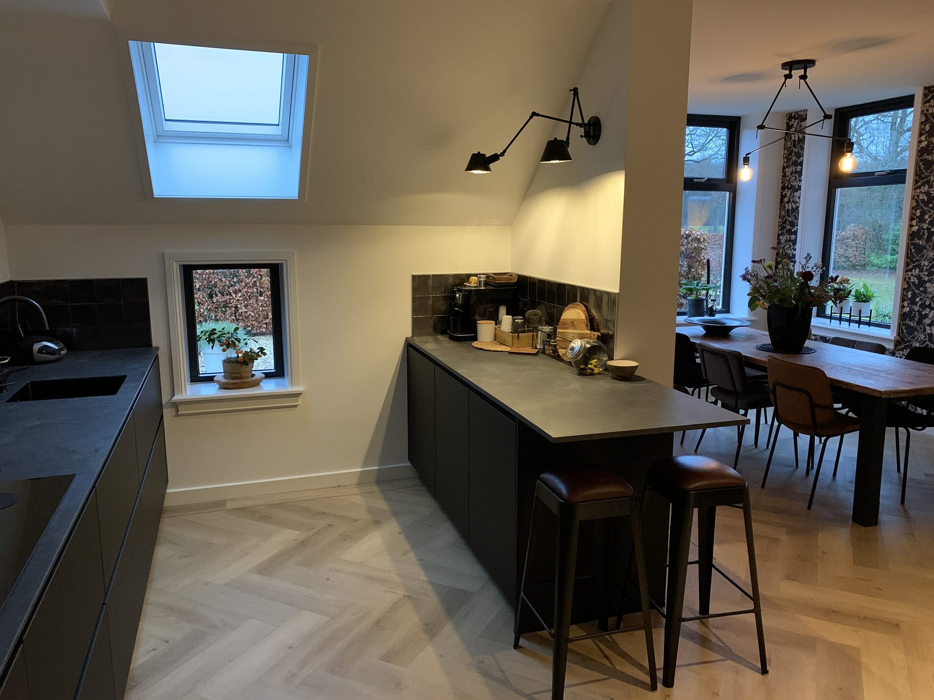 Wij hebben deze prachtige Drentse boerderij flink onder handen genomen. Het woongedeelte is uitgebreid ten koste van het achterhuis. Alle vloeren, wanden en plafonds zijn door ons geïsoleerd. Grenen binnendeuren uit begin vorige eeuw zijn weer terug geplaatst. De visgraad vloer geeft een ruimtelijke indruk.