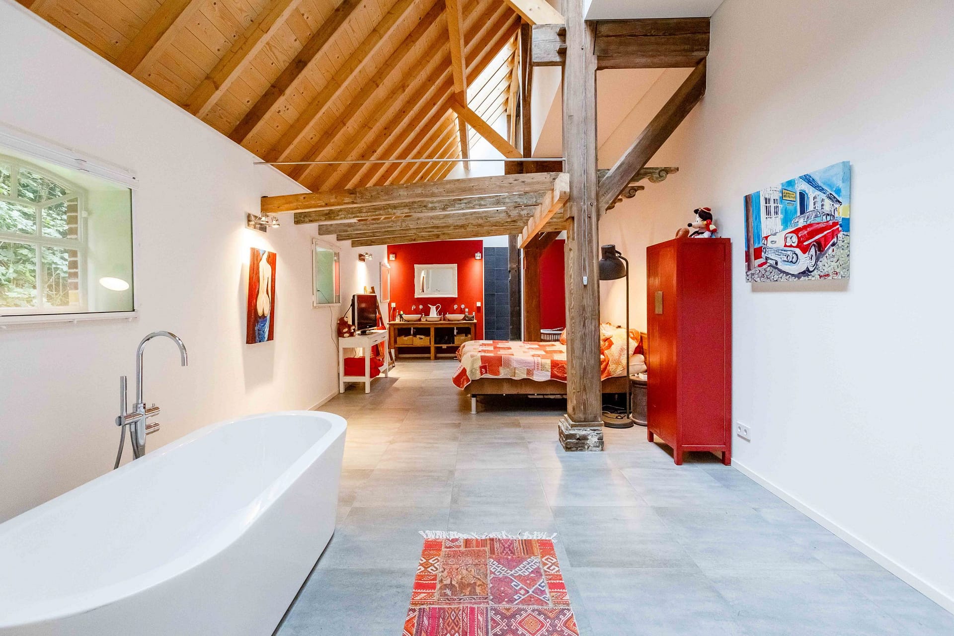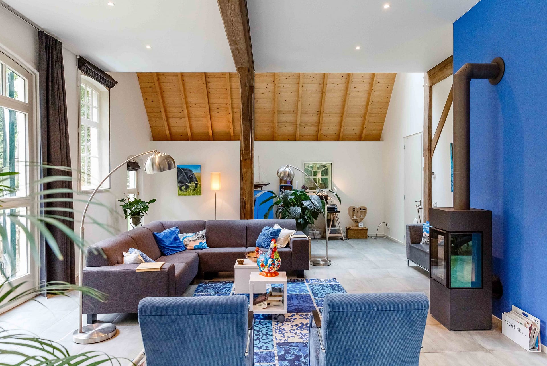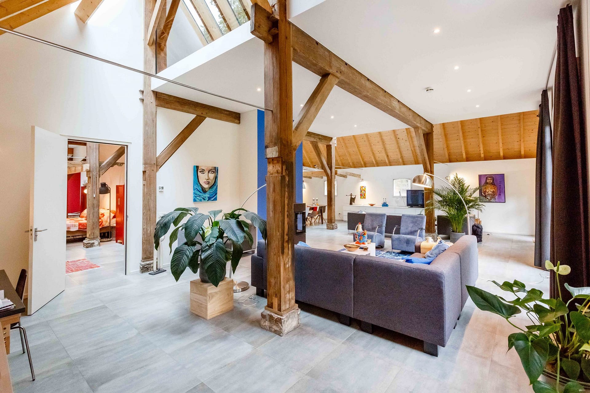 Op landgoed Windesheim bij Zwolle is deze oude schuur omgebouwd naar woning. De bestaande hilde moest worden gerestaureerd, we hebben hier immers met een Rijksmonument te maken. De kap is voor zien van stalen daklichten, en de hele verdieping is voorzien van kamers. Een kleurrijk geheel.