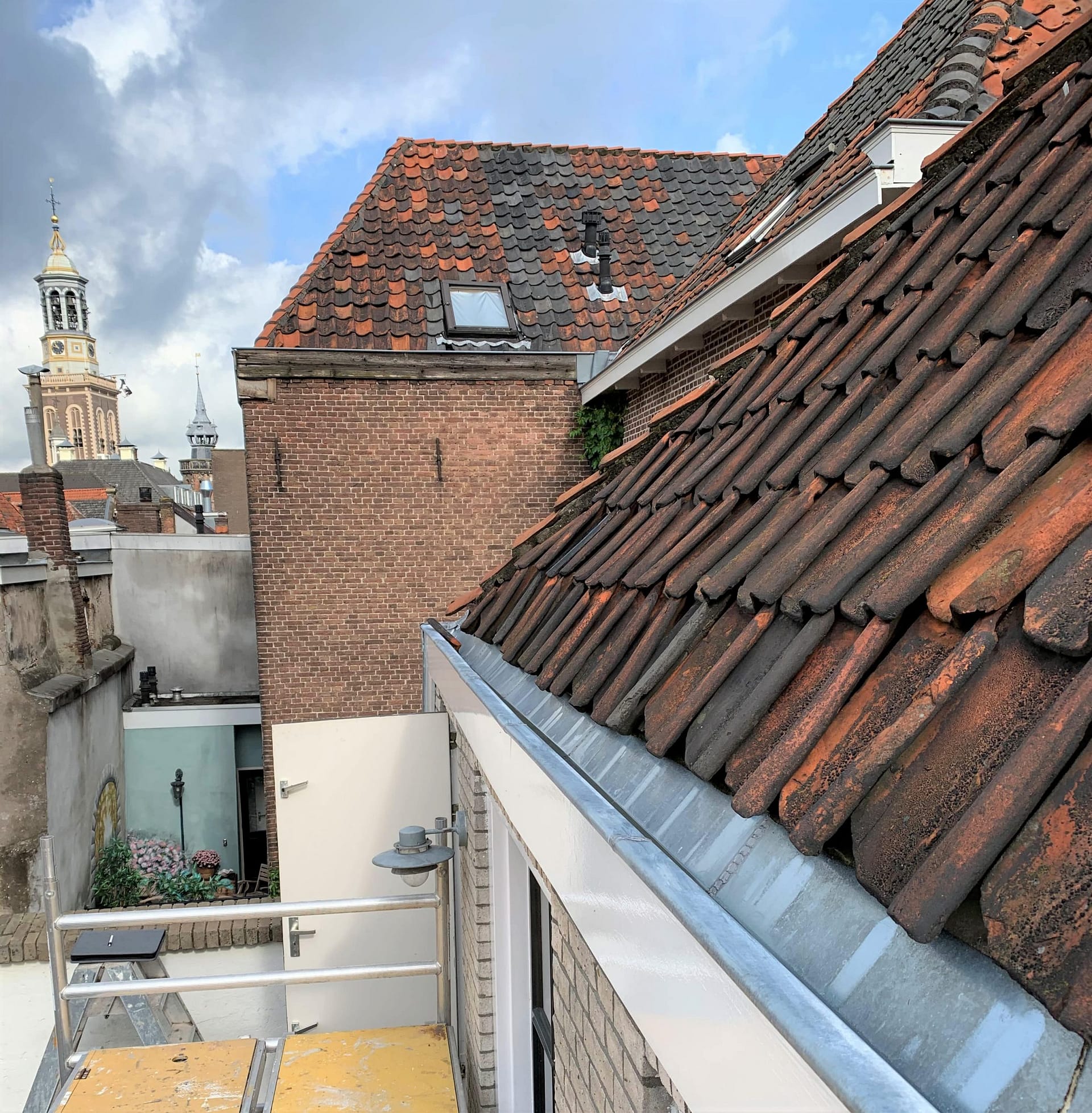 In de binnenstad van Kampen staat dit prachtige Rijksmonument, met uitzicht op de IJssel. Wij hebben hier o.a. loodaansluitingen en kapotte pannen vervangen. De kapconstructie is op enkele plaatsen voorzien van nieuwe muurplaten en sporen. De zinken goten zijn geheel vervangen.