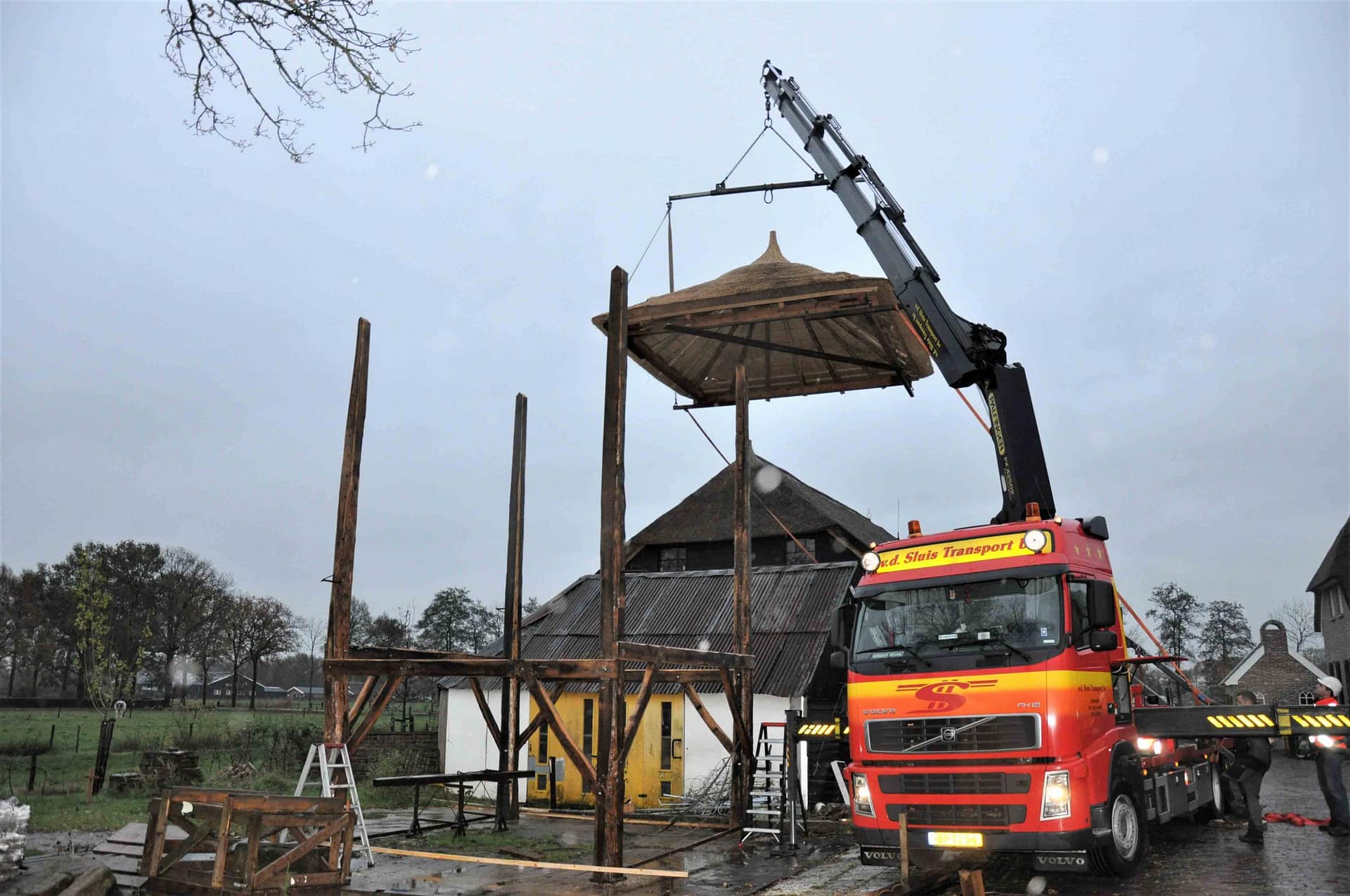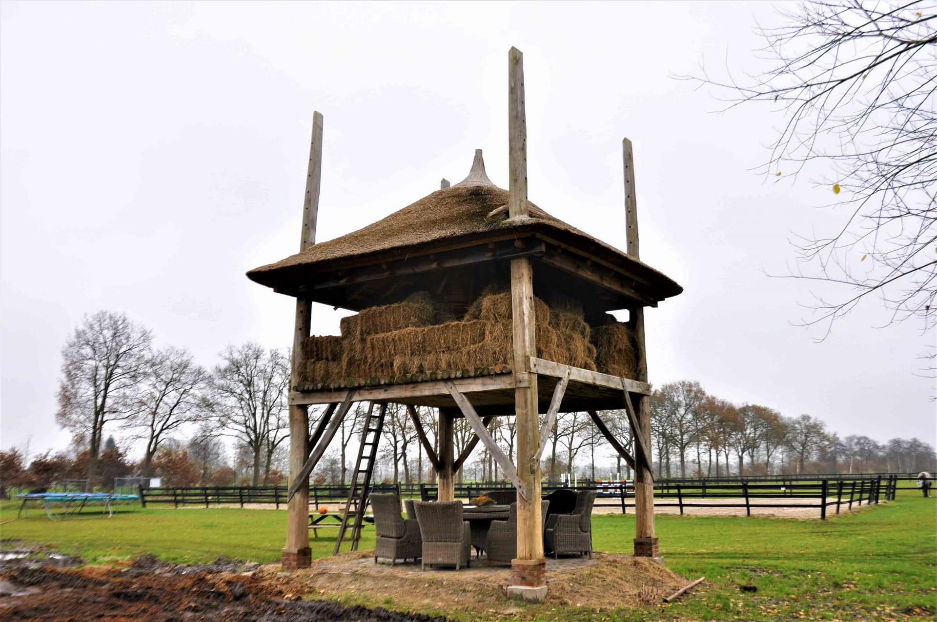 Steltenberg, met ruimte onder de hooizolder voor opslag. Het betreft een vier-roedige hooiberg van 4×4 meter met verstelbare kap van riet.